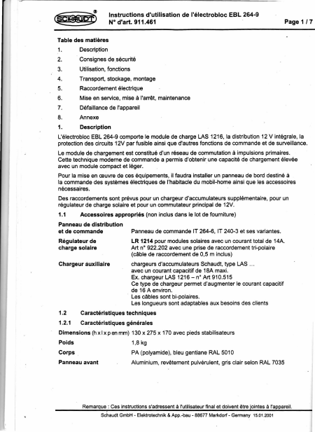 Telecharger SCHAUDT EBL 264-9 Mode emploi Français (11 Pages) 39.90 EUR