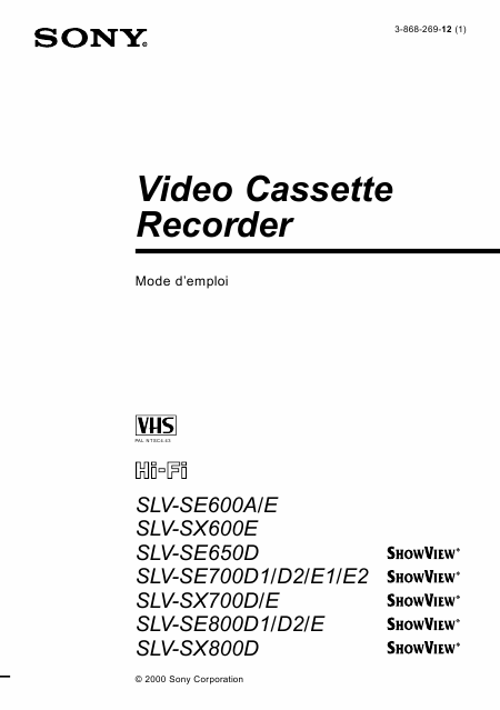 Scaricare SONY SLV-SE600E Istruzione Francese (100 Pagine) 12.90 EUR