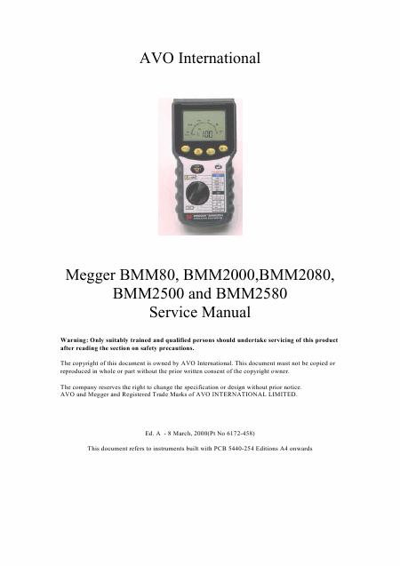 Descargar MEGGER BMM2500 Manual de taller Inglés (132 Páginas) 15.90 EUR