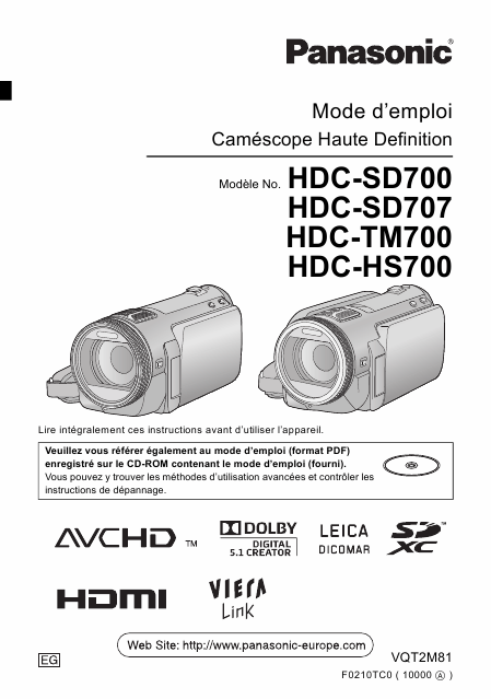 PANASONIC HDC-SD707 Users Guide French