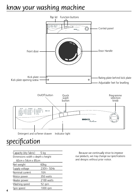 BEKO WMA 10 W (WMA10W) Mode emploi Anglais