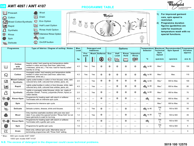 WHIRLPOOL AWT 4097 Istruzione Inglese