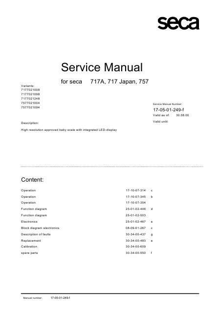 Telecharger SECA 717 Manuel de service Anglais (17 Pages) 15.90 EUR