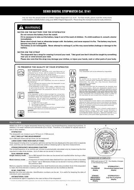 Descargar SEIKO S141 Guía del usuario Inglés (5 Páginas) 12.90 EUR