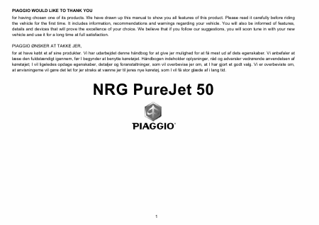 PIAGGIO NRG MC3 PureJet Anleitung Englisch