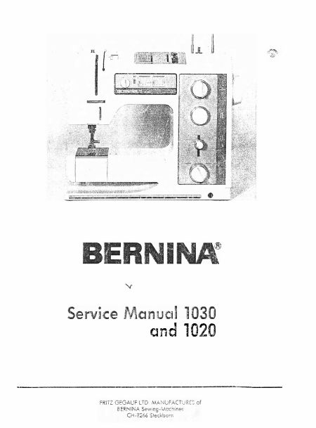 BERNINA 1020 Manuel de service Anglais
