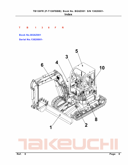 TAKEUCHI TB138FR (Serial 13820001- ) Lista de piezas de repuesto Inglés