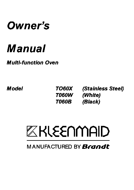 Baixar KLEENMAID TO60W Instruções Inglês (16 Pages) 15.90 EUR