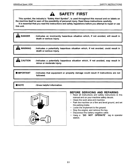 KUBOTA M9540 Manual de taller Inglés