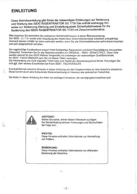 Baixar ISEKI SG 173 H Instruções Alemão (42 Pages) 15.90 EUR