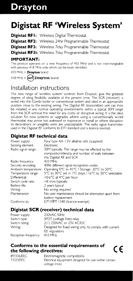 DRAYTON Digistat RF3 Manual de instalación Inglés
