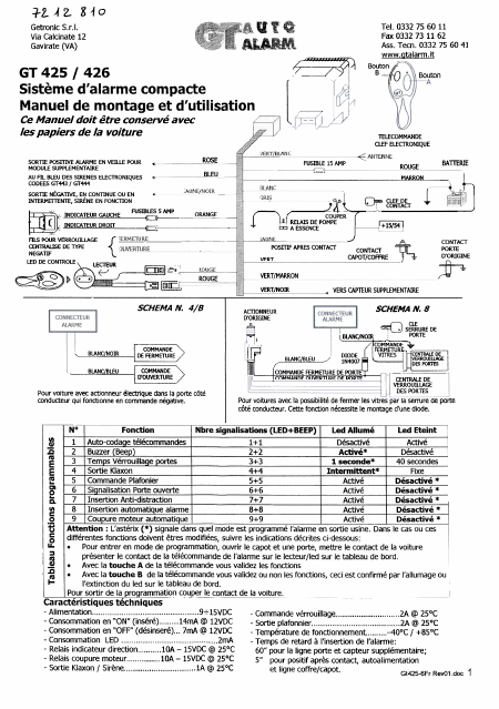 Download GT AUTO ALARM GT 425 Installation Manual French (6 Pages) 15.90 EUR