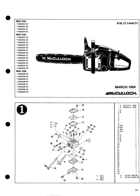 Telecharger MCCULLOCH MAC 835 Liste pieces detachees Français (4 Pages) 12.90 EUR