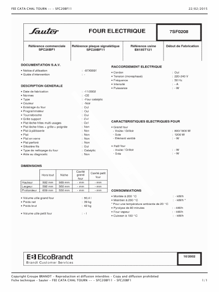 SAUTER SFC20BF11 Serviceanleitung Französisch