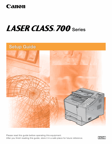Telecharger CANON LASER CLASS 700 Series (Setup Guide) Mode emploi Anglais (30 Pages) 12.90 EUR