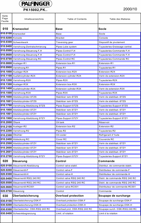 Telecharger PALFINGER PK 15002 Liste pieces detachees Anglais (231 Pages) 39.90 EUR