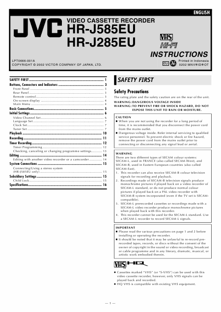 JVC HR-J285EU Anleitung Englisch