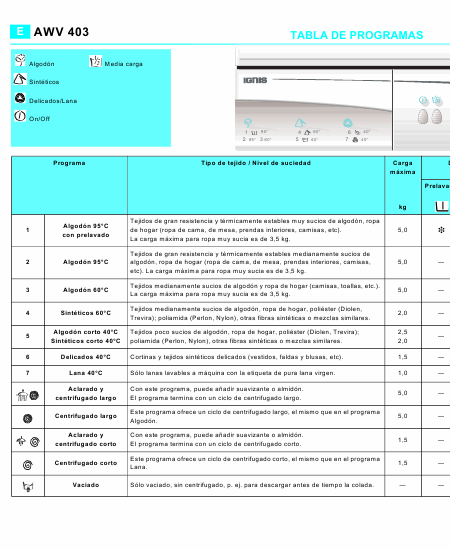 Baixar IGNIS AWV 403 (AWV403) Instruções Espanhol (16 Pages) 12.90 EUR