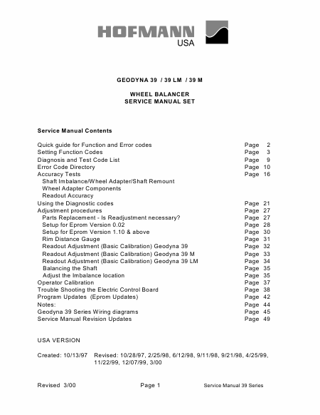 Download HOFMANN Geodyna 39 M Service Manual English (49 Pages) 39.90 EUR