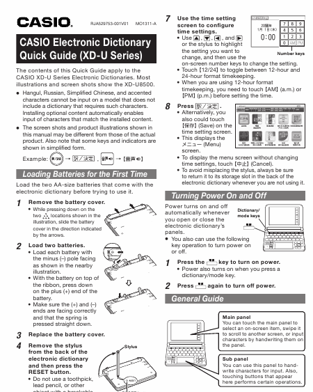 CASIO XD-U Series Guía de inicio rápido Inglés