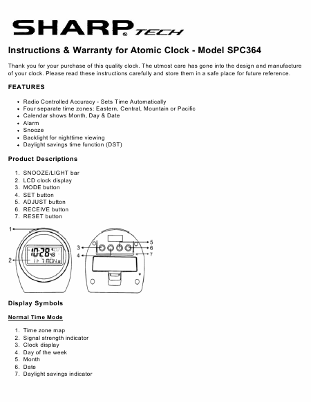 Telecharger SHARP SPC 364 (SPC364) Mode emploi Anglais (5 Pages) 15.90 EUR