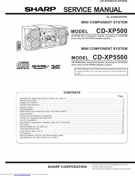 Scaricare SHARP CD-XP500 Manuale di servizio Inglese (64 Pagine) 39.90 EUR