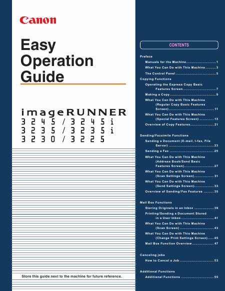 Telecharger CANON iR 3225 (iR3225) Easy Operating Guide Mode emploi Anglais (60 Pages) 39.90 EUR