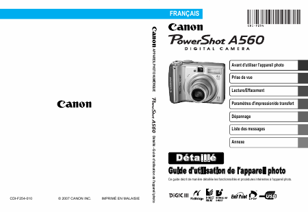 CANON PowerShot A560 Users Guide French