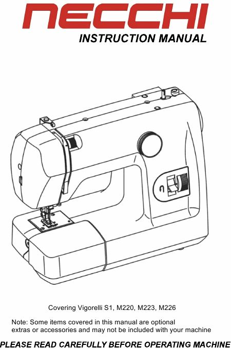 NECCHI VIGORELLI S1 Anleitung Englisch