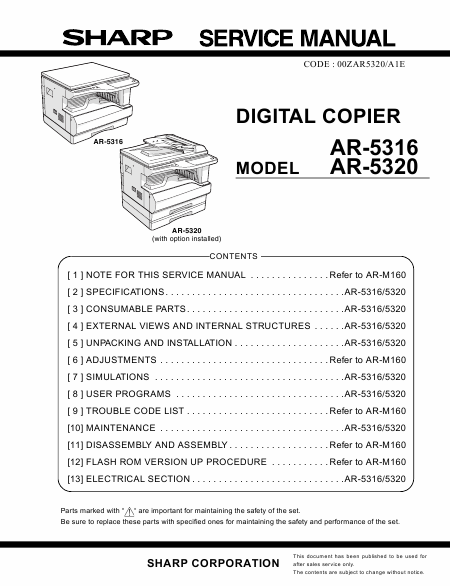 Download SHARP AR-5316 Serviceanleitung Englisch (19 Seiten) 15.90 EUR