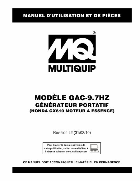 MULTIQUIP GAC-9.7HZ Liste pieces detachees Français