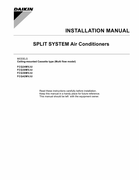 Baixar DAIKIN FCQ36MVJU Manual de Instalação Inglês (16 Pages) 12.90 EUR