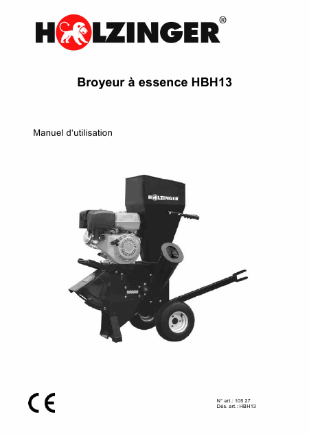 HOLZINGER HBH13 Mode emploi Français