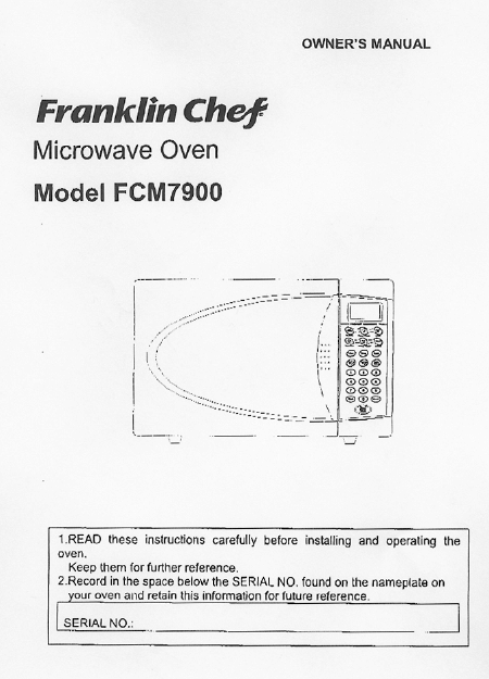 FRANKLIN CHEF FCM 7900 (FCM7900) Guía del usuario Inglés