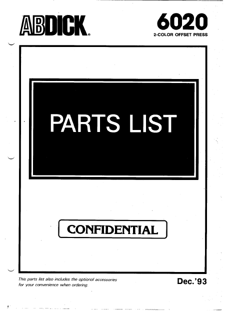 AB DICK 6020 Liste pieces detachees Anglais