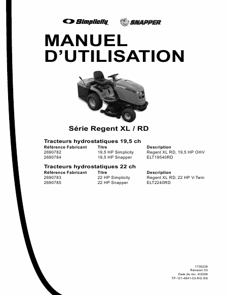 SIMPLICITY S�rie Regent XL / RD Users Guide French