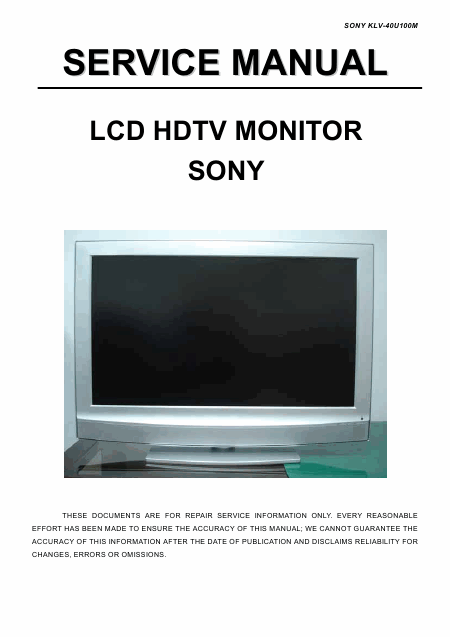 Download SONY KLV-40U100M Serviceanleitung Englisch (74 Seiten) 39.90 EUR