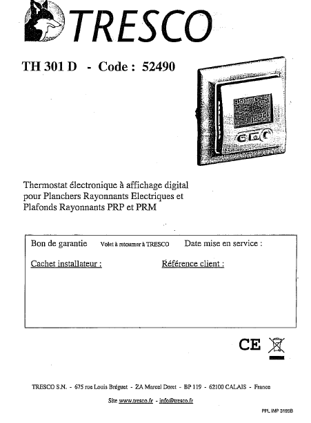 TRESCO TH301D Installationsanweisungen Französisch