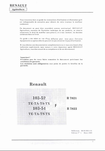 Scaricare RENAULT 103-54 TX Istruzione Francese (94 Pagine) 59.90 EUR