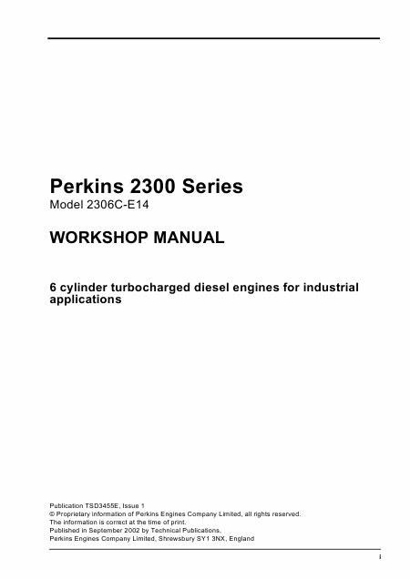 Descargar PERKINS 2300 Series Manual de taller Inglés (158 Páginas) 15.90 EUR