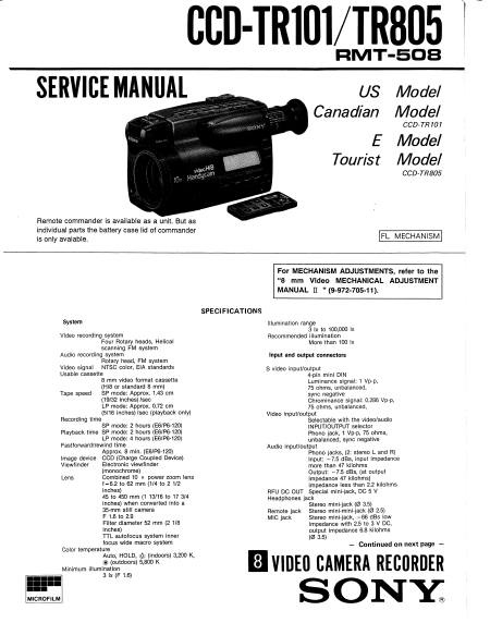 SONY CCD-TR805 Serviceanleitung Englisch