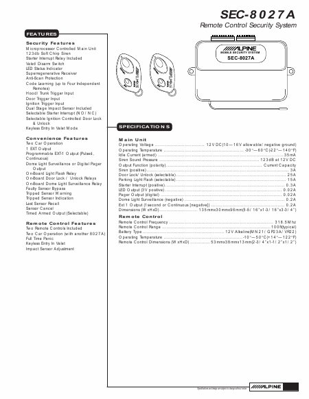 Download ALPINE SEC-8027A Wiring Diagram Installationsanweisungen Englisch (2 Seiten) 12.90 EUR