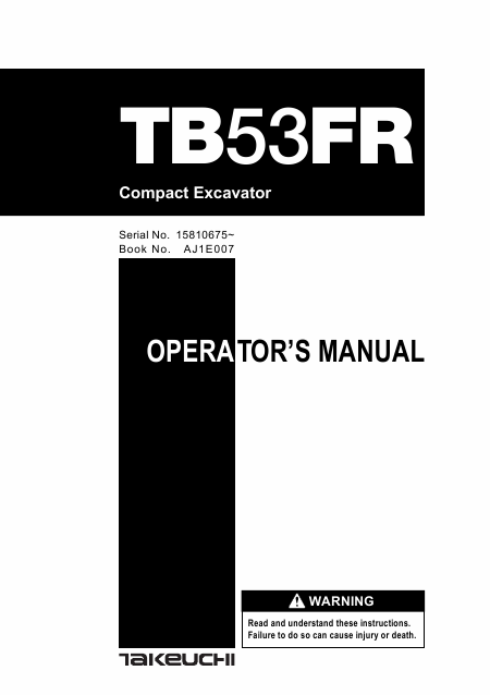 Descargar TAKEUCHI TB53FR Guía del usuario Inglés (194 Páginas) 39.90 EUR