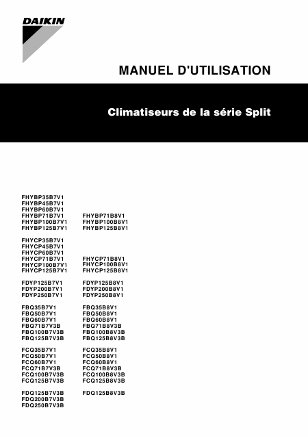DAIKIN FDQ200B7V3B Guía del usuario Francés