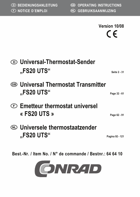 Download CONRAD FS20 UTS Anleitung Französisch (30 Seiten) 12.90 EUR