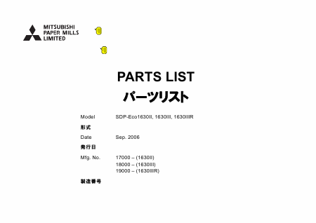 MITSUBISHI SDP-Eco1630II Lista de piezas de repuesto Inglés