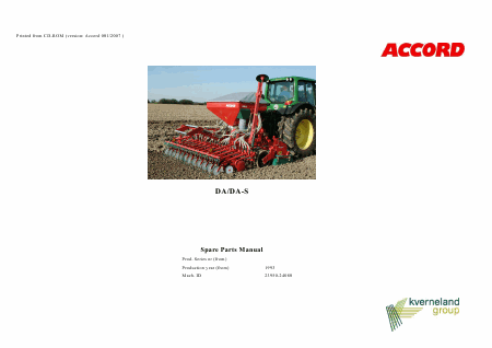 KVERNELAND ACCORD DA / DA-S (1993) Lista parti di ricambio Inglese