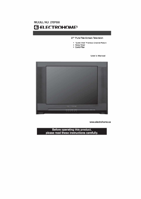 ELECTROHOME 27EP508 Anleitung Englisch