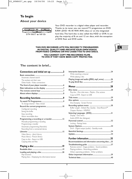 Download THOMSON DTH8357 Anleitung Englisch (0 Seiten) 12.90 EUR