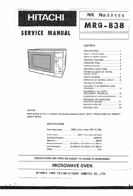 Descargar HITACHI MRG-838 Manual de taller Inglés (35 Páginas) 15.90 EUR